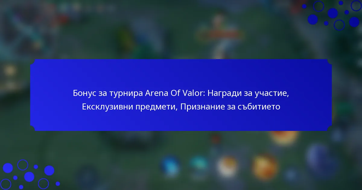 Бонус за турнира Arena Of Valor: Награди за участие, Ексклузивни предмети, Признание за събитието