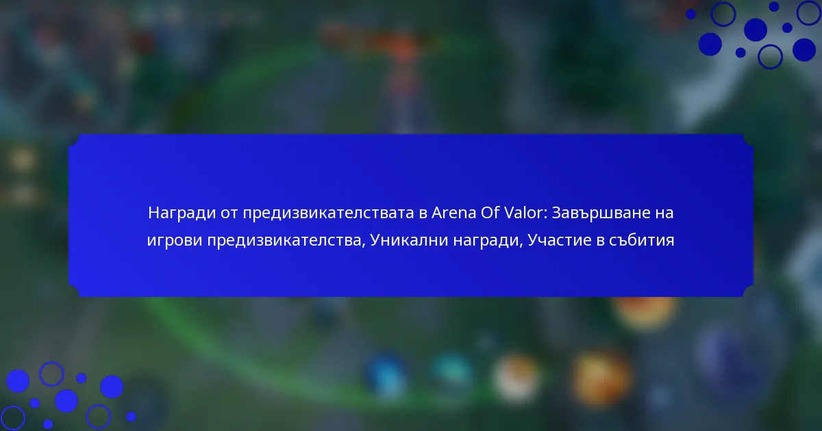 Награди от предизвикателствата в Arena Of Valor: Завършване на игрови предизвикателства, Уникални награди, Участие в събития